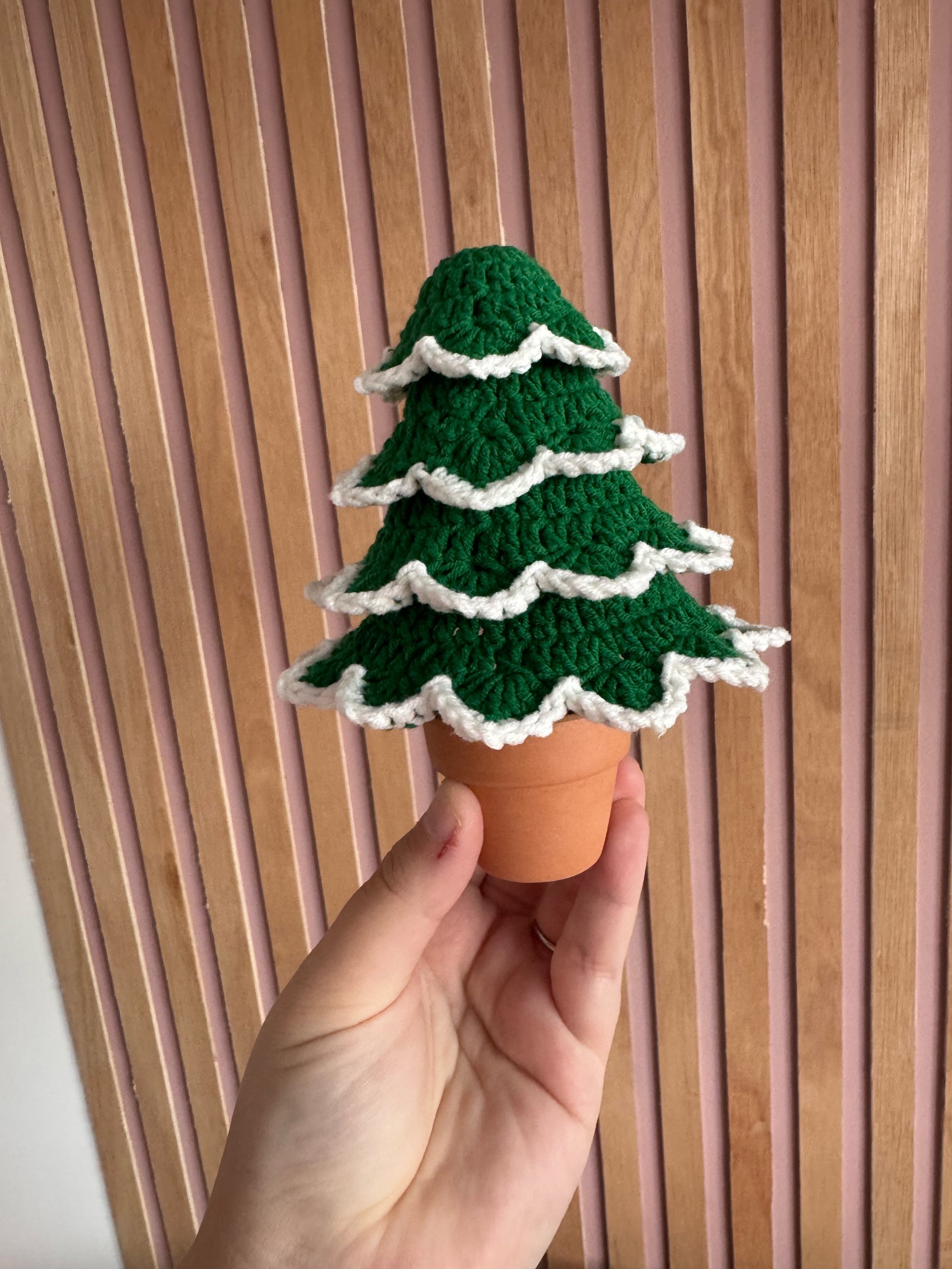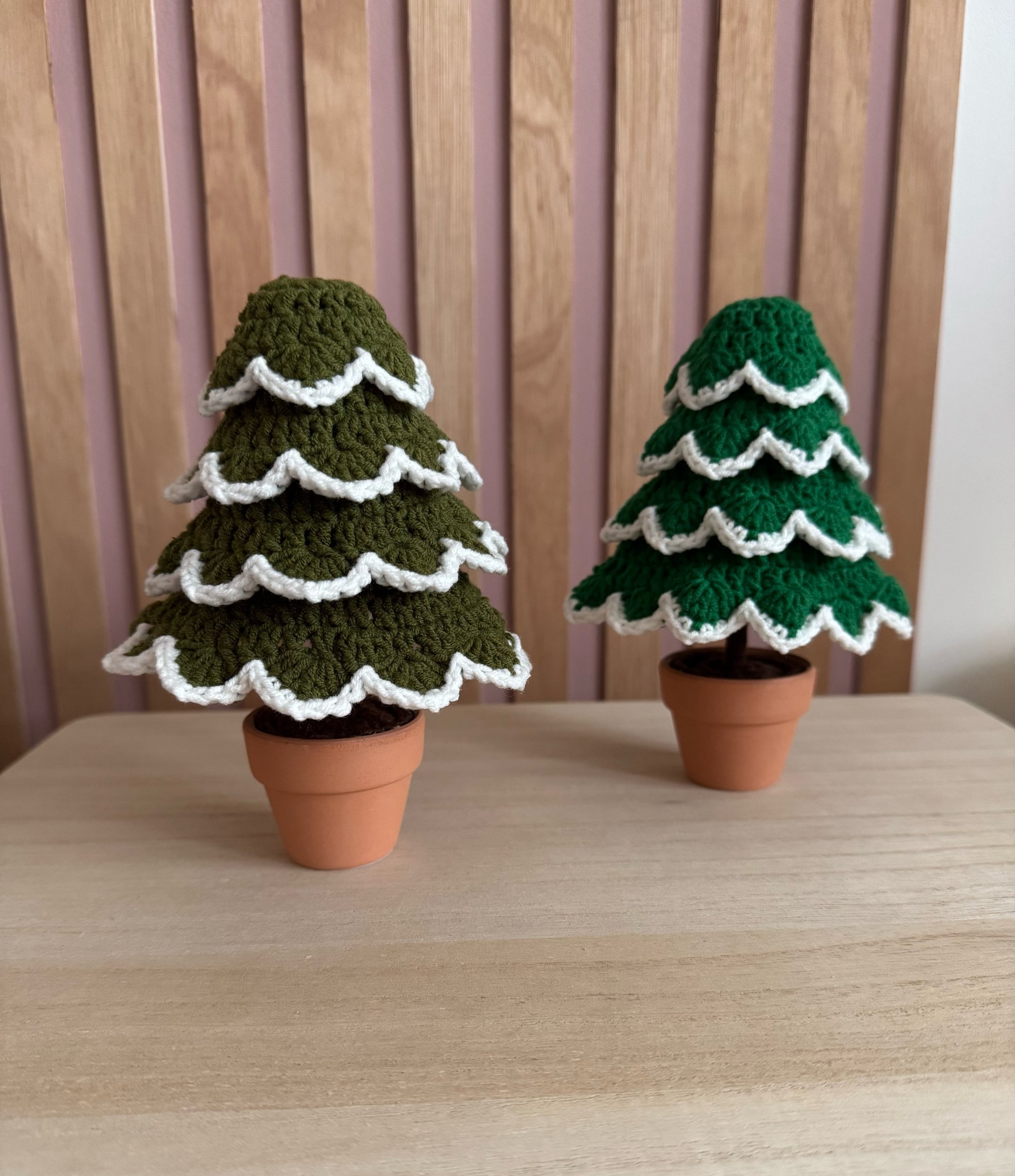 Add a little festive cheer to any place in your home with our stunning Christmas tree's. These handcrafted Christmas tree's are the WOW of our crochet gifts. Each one has been crocheted with an attention to detail and all unique in their own way. This little beauties are perfect for adding to a shelf, style up a unit or maybe adding a little bit if festivities to your work desk. Standing at 16cm tall and are 'planted' in mini terracotta plant pots measuring 5cm diameter.