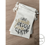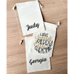 Each cotton bag is 10cm x 15cm. Choose from red, gold, glitter silver and glitter gold themed.