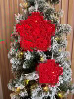 Handmade Christmas ornaments are the perfect accessory to add to any Christmas tree's or garlands to bring the festive cheer. Each individual star has been handmade and are a blended cotton acrylic yarn. The sparkle stars have been crochet with added tinsel yarn to give the sparkly effect. We have to sizes to choose from regular which are measured 10 cm each to the longest point and chunky which are measured 13 cm each to the longest point.