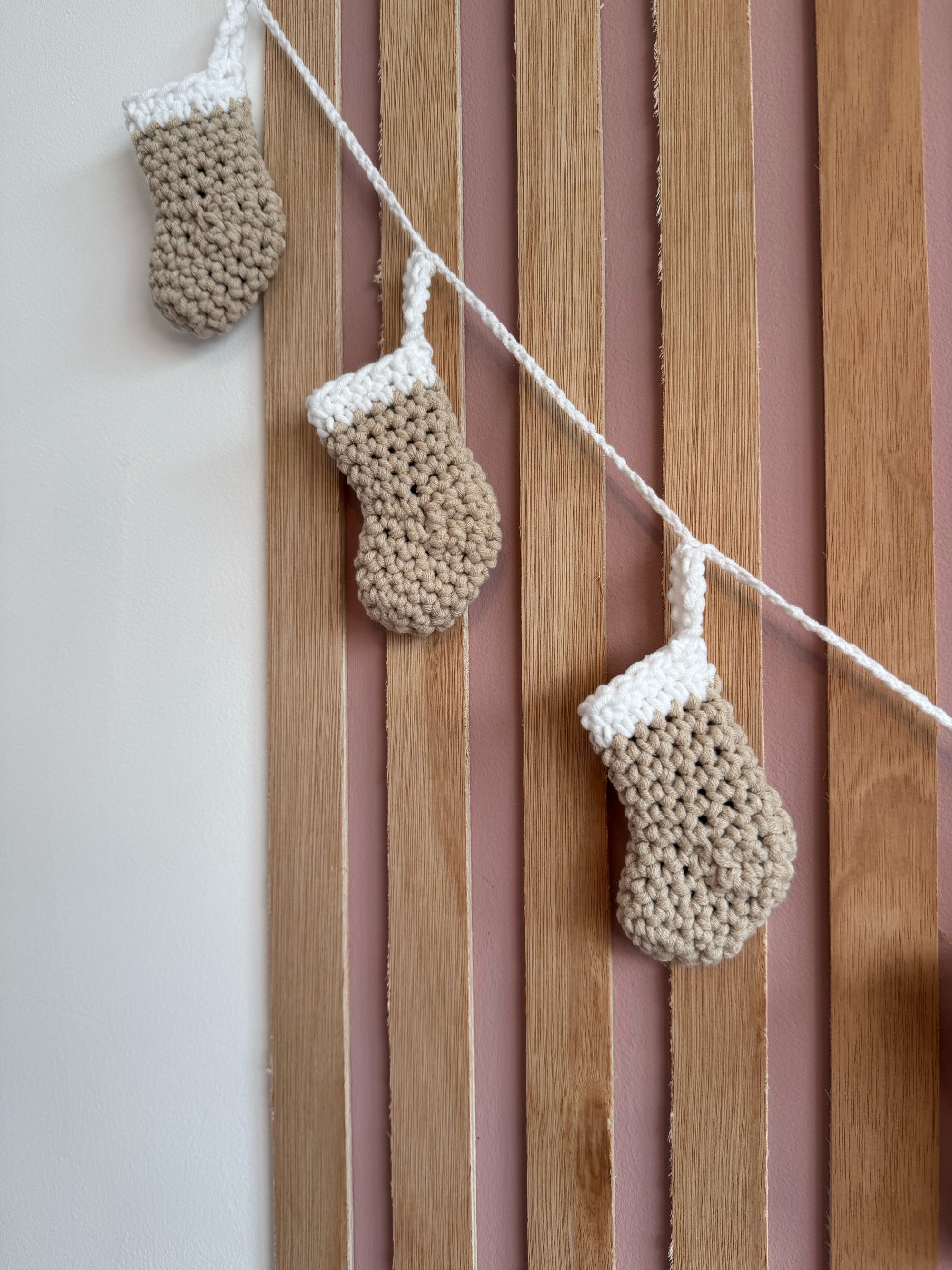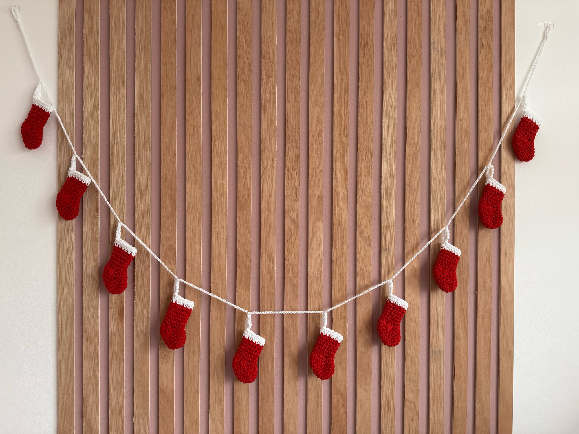 Handmade Christmas garlands are the perfect home decor accessory to add to any room to bring the festive cheer. Each individual stocking has been handmade and are a blended cotton and acrylic chunky yarn. Each garland has 10 crochet stocking perfect for hiding them christmas treats.
